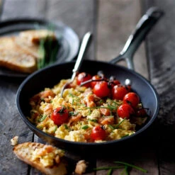Bak een ei met spek of een stapel pannenkoeken in de Le Creuset Les Forgees Koekenpan 20 cm. De koekenpan heeft een anti-aanbaklaag, hierdoor kleven je eieren en pannenkoeken niet vast aan de bodem en is bakken een stuk gezonder. Is je eitje klaar? Dan verplaats je de pan veilig, het handvat is hol en blijft hierdoor koel. Wanneer je klaar bent met bakken, heb je geen omkijken naar de vaat. De koekenpan gaat namelijk gewoon de vaatwasmachine in. Hang de pan eenvoudig op aan een haakje dankzij het oog in de steel.