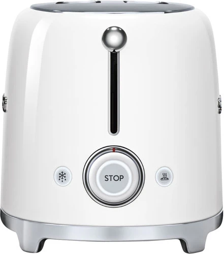 Met de SMEG TSF01WHEU Wit broodrooster zijn je sneetjes brood in mum van tijd geroosterd. Het broodrooster heeft namelijk een hoog vermogen van 950 watt. Je kiest uit 6 verschillende standen. Zo maak je het brood zo krokant als jij wilt. Hij heeft 3 automatische programma’s waarmee je verwarmt, ontdooit of éénzijdig roostert. De laatste functie komt goed van pas wanneer je een bagel wilt maken. Het brood plaats je in de sleuven en duw je met de hendel omlaag. Wanneer de sneetjes krokant genoeg zijn, worden ze automatisch omhoog geduwd. Na gebruik maak je de kruimellade gemakkelijk schoon. De stekker berg je aan de achterkant netjes op.
